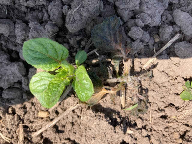 This is what a hard freeze does to potatoes in the spring.